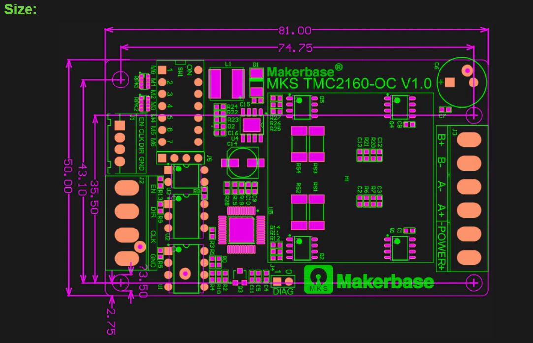 This is the MKS TMC2160 stepper driver that is suitable to use on the MKS DLC V2.0 controller board.