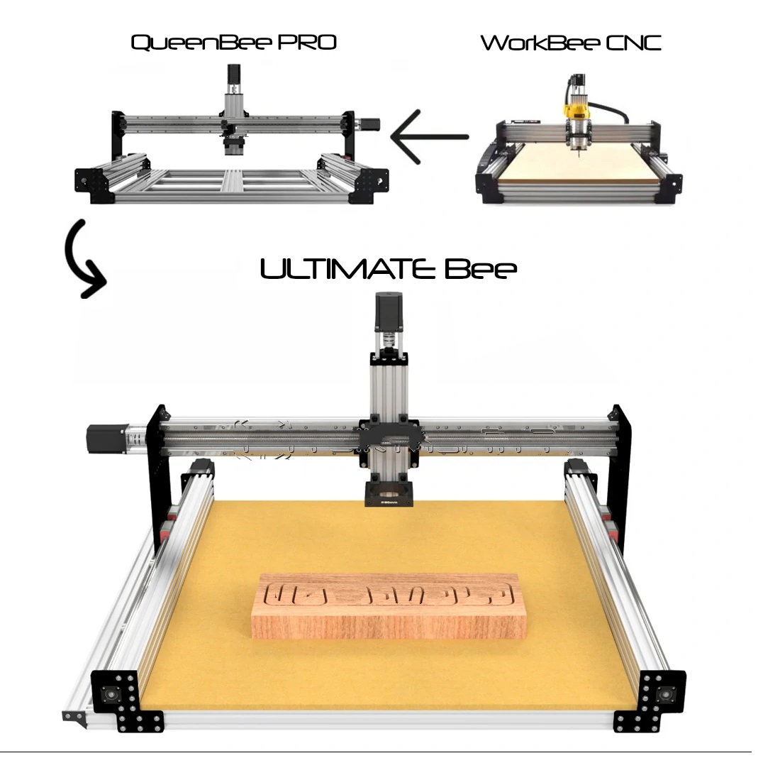 The ULTIMATE Bee is our second CNC Machine based on the initial WorkBee design lineage, which is characterized by the use of C-Beam Extrusions and rectangular-shaped Y-Plates.