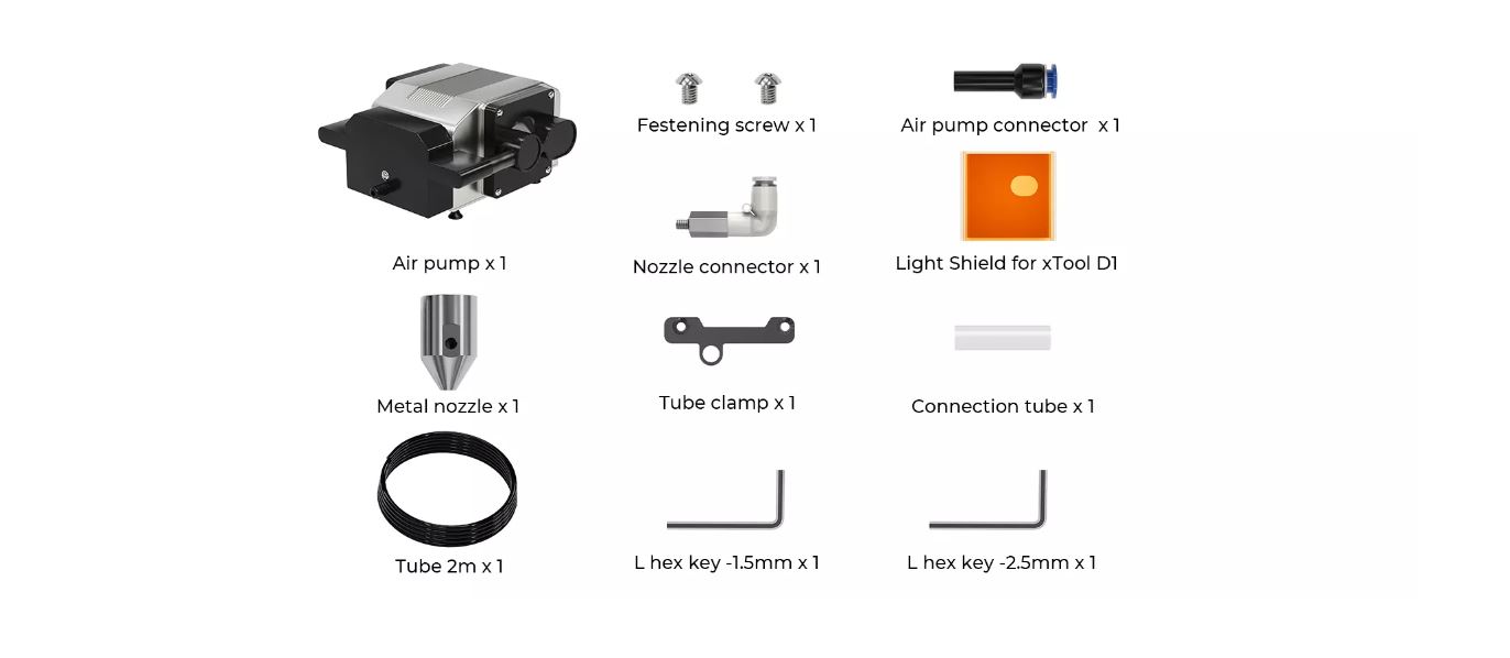Improve the engraving and cut quality by using the air assist kit for your laser machine. The noise of the air-assist unit when working is 40 decibels, which is lower than the working sound of the fan. This can be used in other CNC machines too.