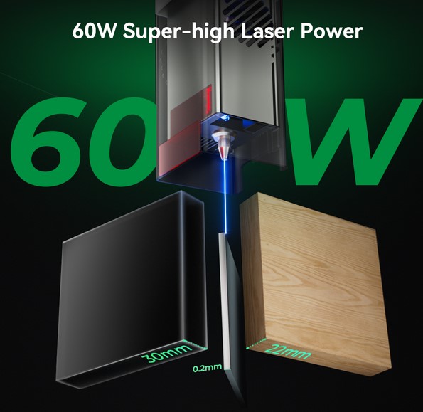 Creality Falcon 2 PRO 60W Laser Engraver and Cutter with Air Assist + extra 1.6MW Laser Module
