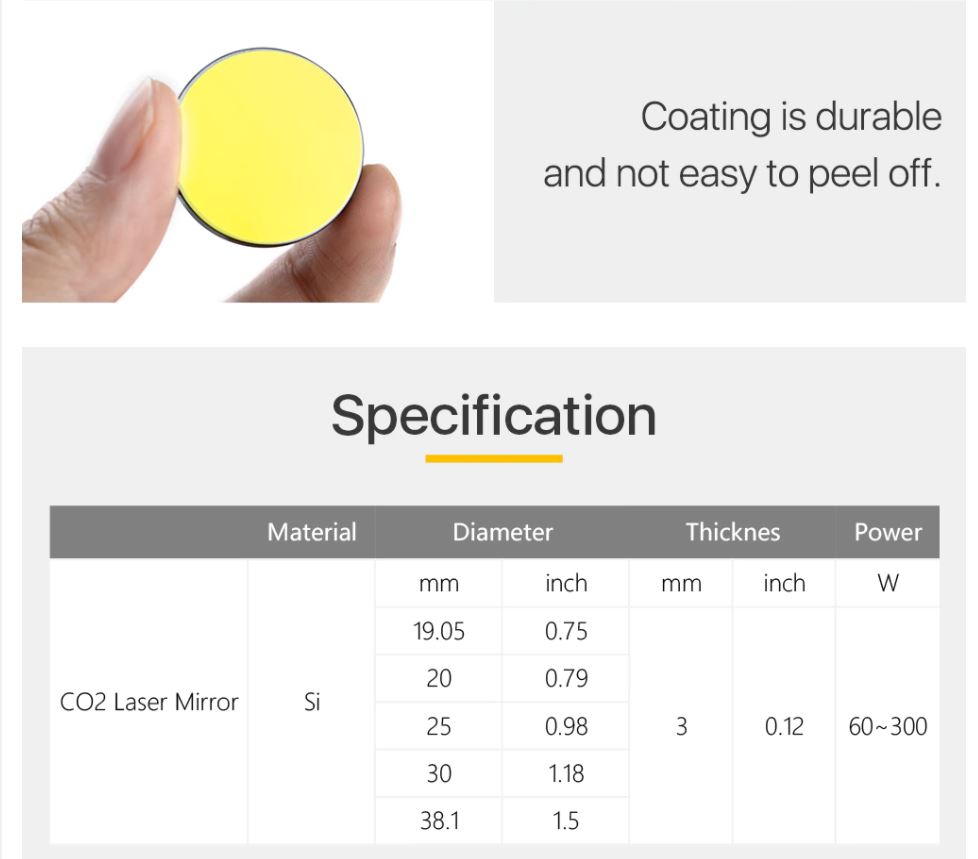 This is the gold-plated 20mm / 25mm high-quality mirrors for the CO2 laser engraver and cutter machine.