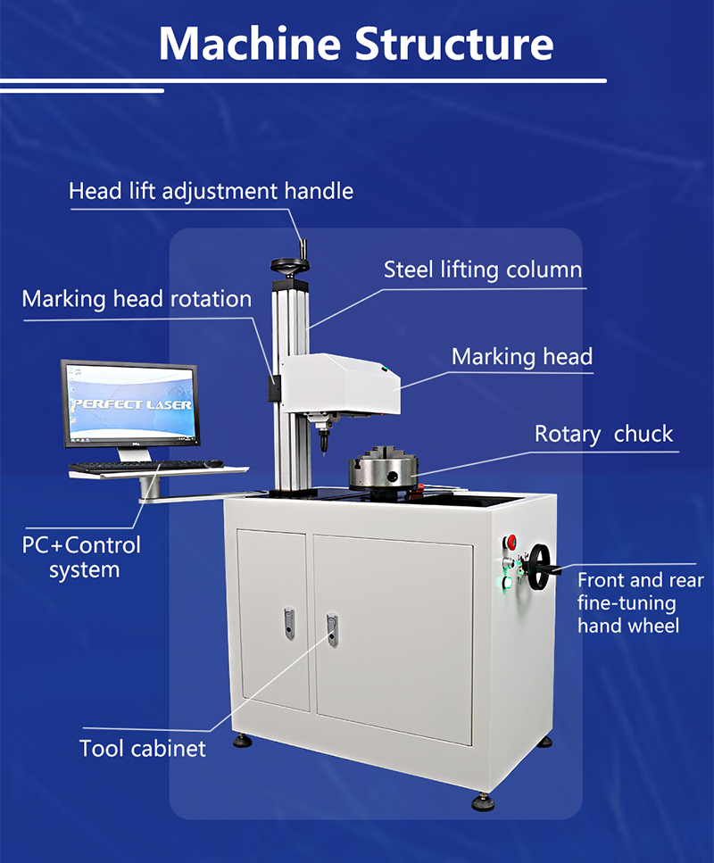 Perfect Laser's new dot pin marking machine PEQD-250G comes with a computer, adopts a rotation control system, and cooperates with the marking needle to rotate synchronously. The marking accuracy is high and smooth, and the service life is long. The horizontal rotary dot pin marking machine adopts a lifting column structure and an adjustable marking head. The position of the installation column can also be adjusted according to specific marking requirements, which is more practical.