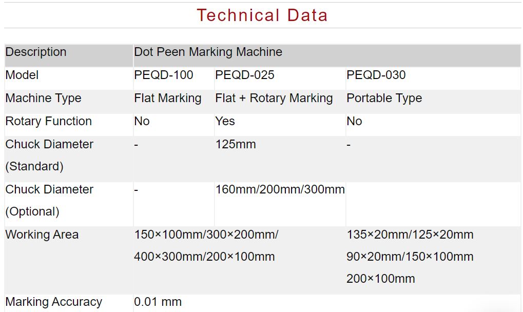 Perfect Laser is a famous dot peen marking machine manufacturer, and now partnered with Neotronics SA we can bring this to our market in South Africa! Our PEQD-100 dot peen marking machine is suitable for flat marking on metals and some hard plastics. The dot peen marking machine is an industrial marking machine which can make permanently logo,letters,numbers,graph and date on workpiece with direct part marking.