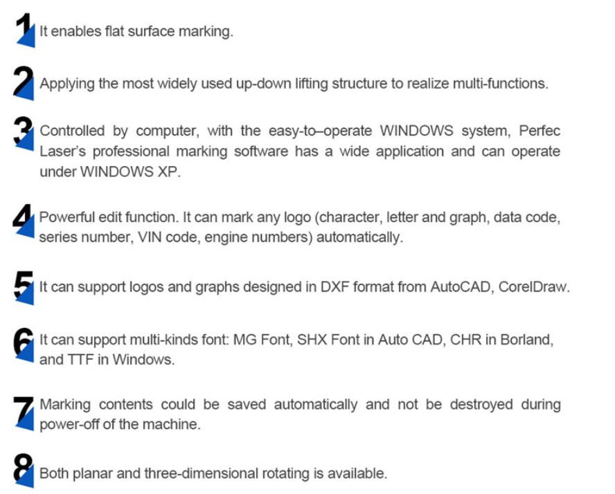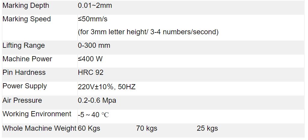 1.The dot peen marking machine enables flat surface marking of the metal and hard plastic work piece.