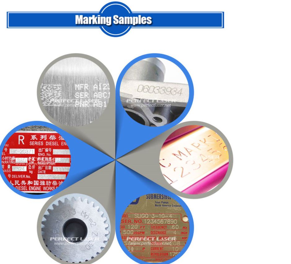 Direct part mark Can be used for connecting rods, engines, various mechanical parts, machine tools, hardware products, various metal signs, metal pipe fittings, gears, pumps, valves, solid parts and a variety of hard plastic products surface numbering, name, trademark logo etc.