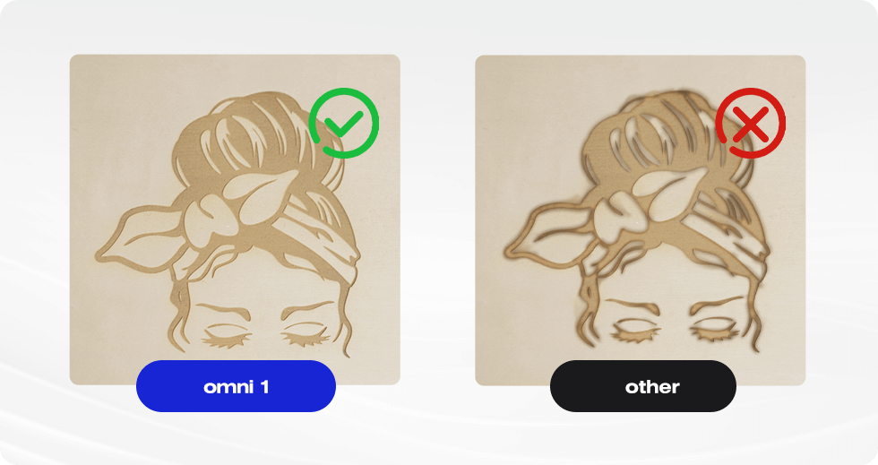 The Omni 1 stands out with its user-friendly interface and intuitive controls, making it accessible to both beginners and experienced makers. Its compact and sturdy design ensures stability during operation, while the adjustable settings give you full control over power, speed, and resolution, allowing you to tailor each job to your specific needs.