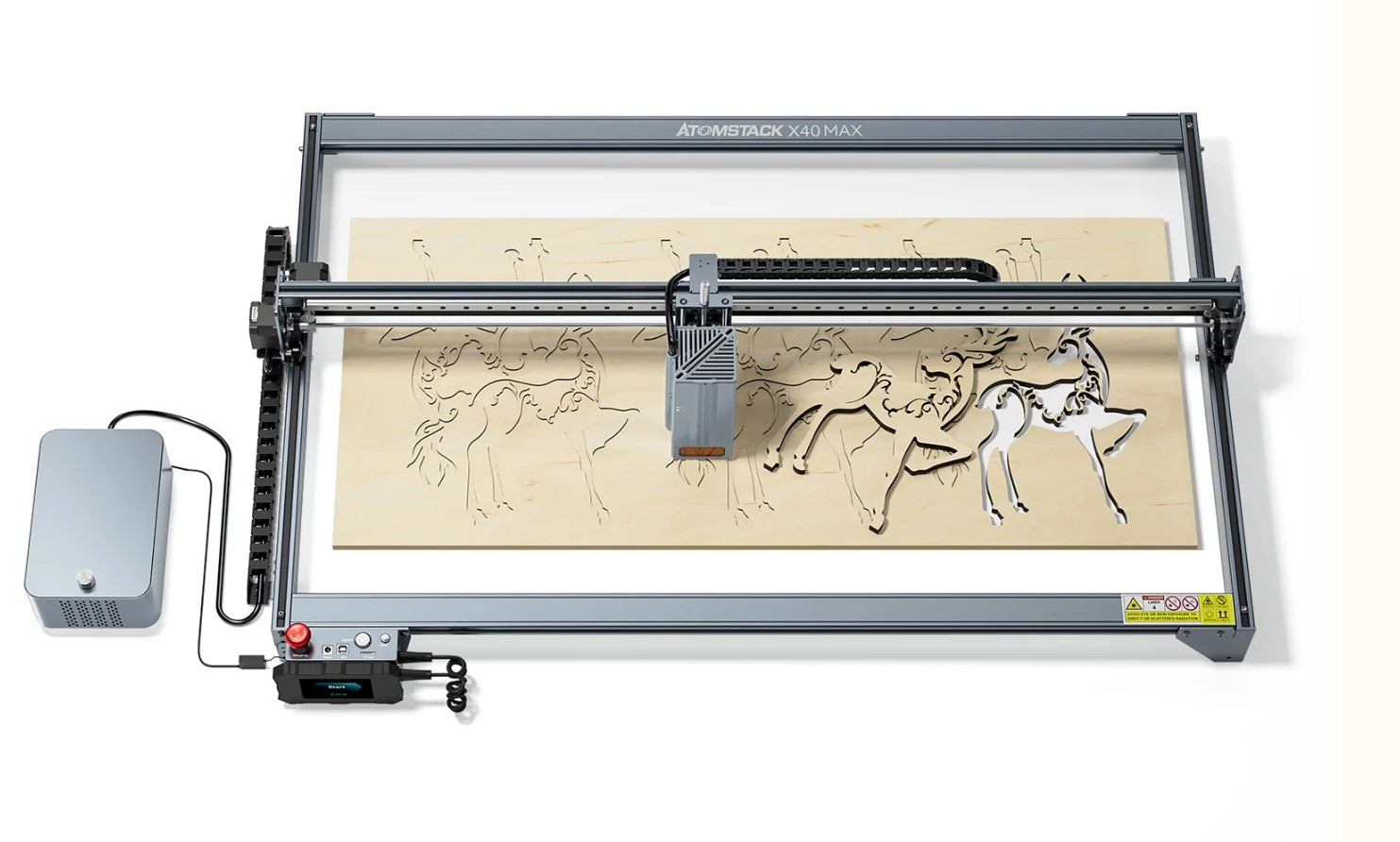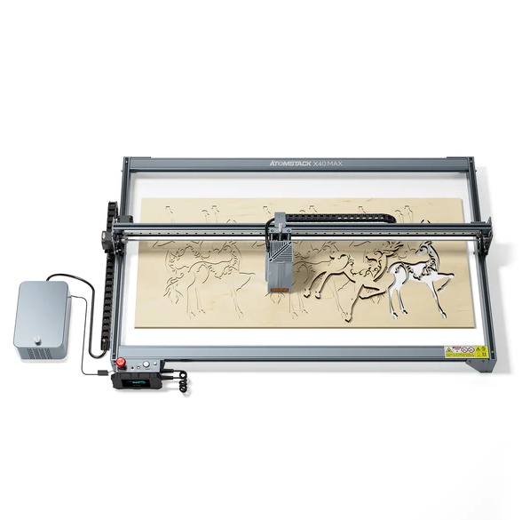 The Atomstack S40 MAX 210W Professional Grade Laser Engraving And Cutting Machine Pro Bundle represents the pinnacle of precision and power in fabrication technology. Engineered for professional-grade performance, this cutting-edge machine offers unrivaled capabilities for engraving and cutting a diverse range of materials with exquisite detail and accuracy. Equipped with a formidable 210W laser, the Atomstack S40 MAX 210W effortlessly tackles intricate designs and demanding projects easily. Whether working with wood, acrylic, leather, or other materials, this machine delivers consistent, high-quality results every time. The difference between the S40 Pro and S40 Max is that the working area of the X40 Max is larger, it gives you an 800 x 400mm working area. The S40 Pro gives you a 400 x 400mm working area. So this is double the size of the length.