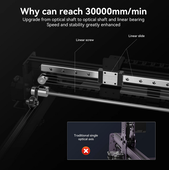 3. New Motion Structure: Unlike Atomstack's previous machines, ATOMSTACK X40 MAX adopts a linear guide X-axis with better structural stability, which makes X40 MAX work stably at a high speed of 600mm/s and engraving and cutting lines smoothly without jittering.