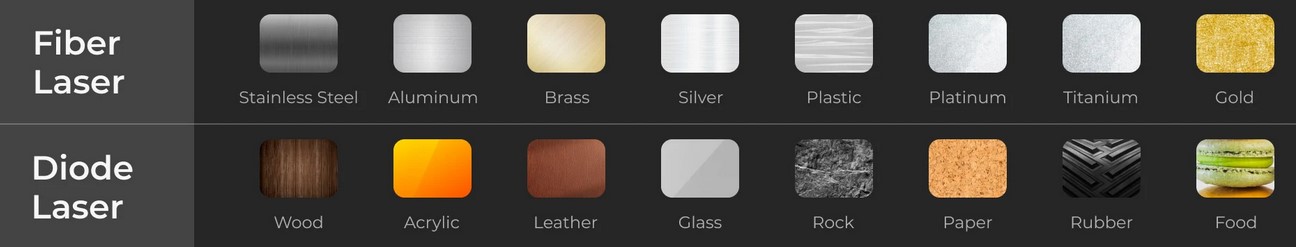 Work on Almost All Materials with the World's First 20W Fiber & 20W Diode Dual Laser. We combined the abilities of two lasers in the F1 Ultra: a fiber laser for its exceptional metal engraving performance and a blue diode laser for engraving the most common materials.