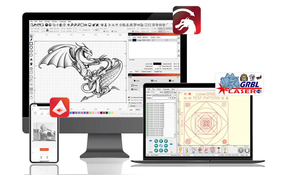 It is a comprehensive solution for diverse engraving and cutting projects, offering precision, versatility, and safety in one package. This is equipped with a 20W laser module capable of engraving and cutting.