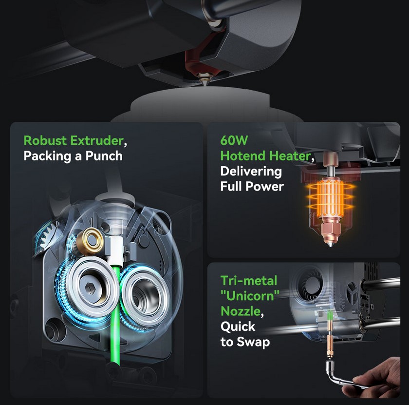 - Easy Maintenance: Quick-swap Tri-metal Nozzle